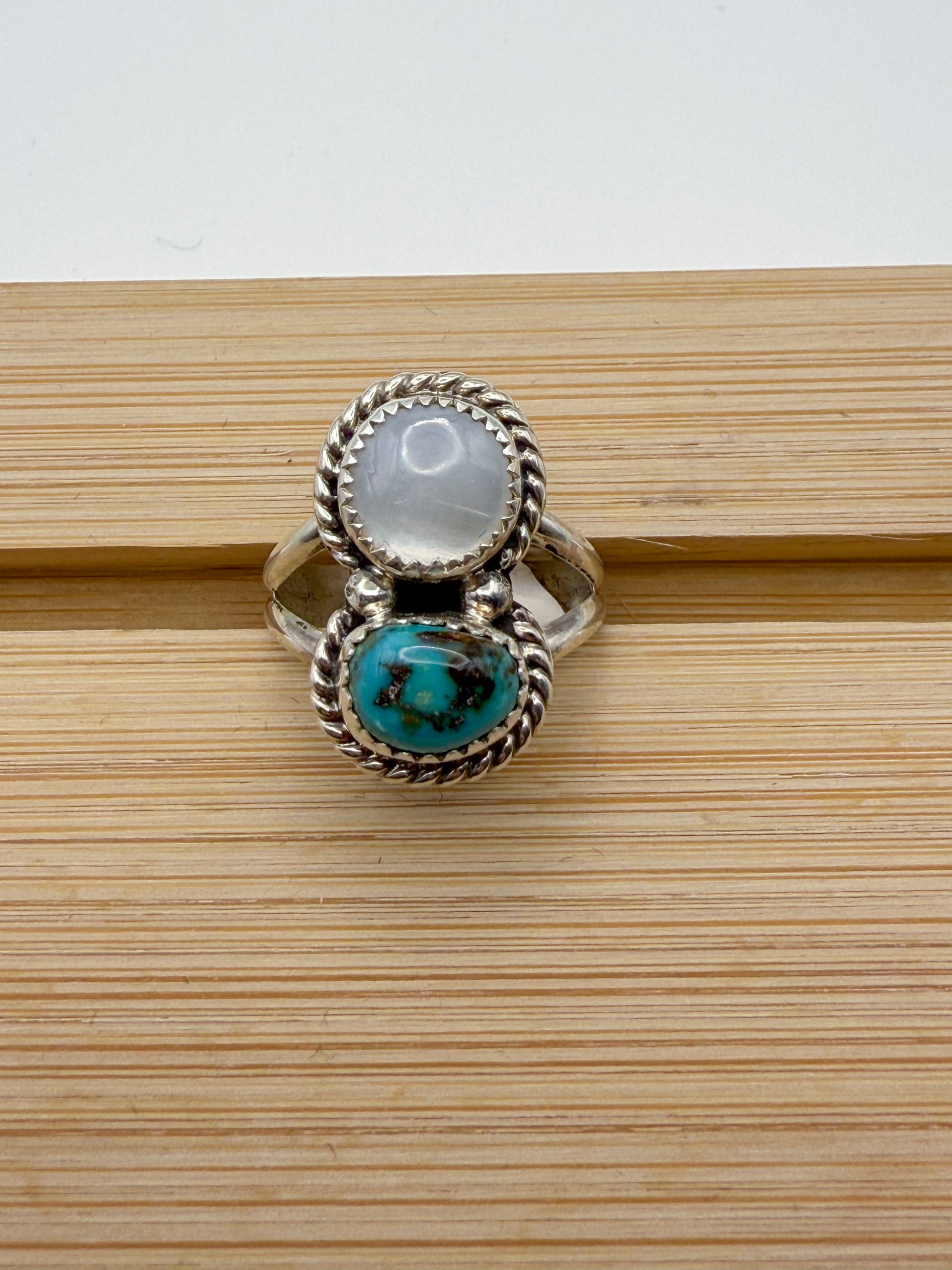 Beautiful Turquoise and Moon Stone Ring